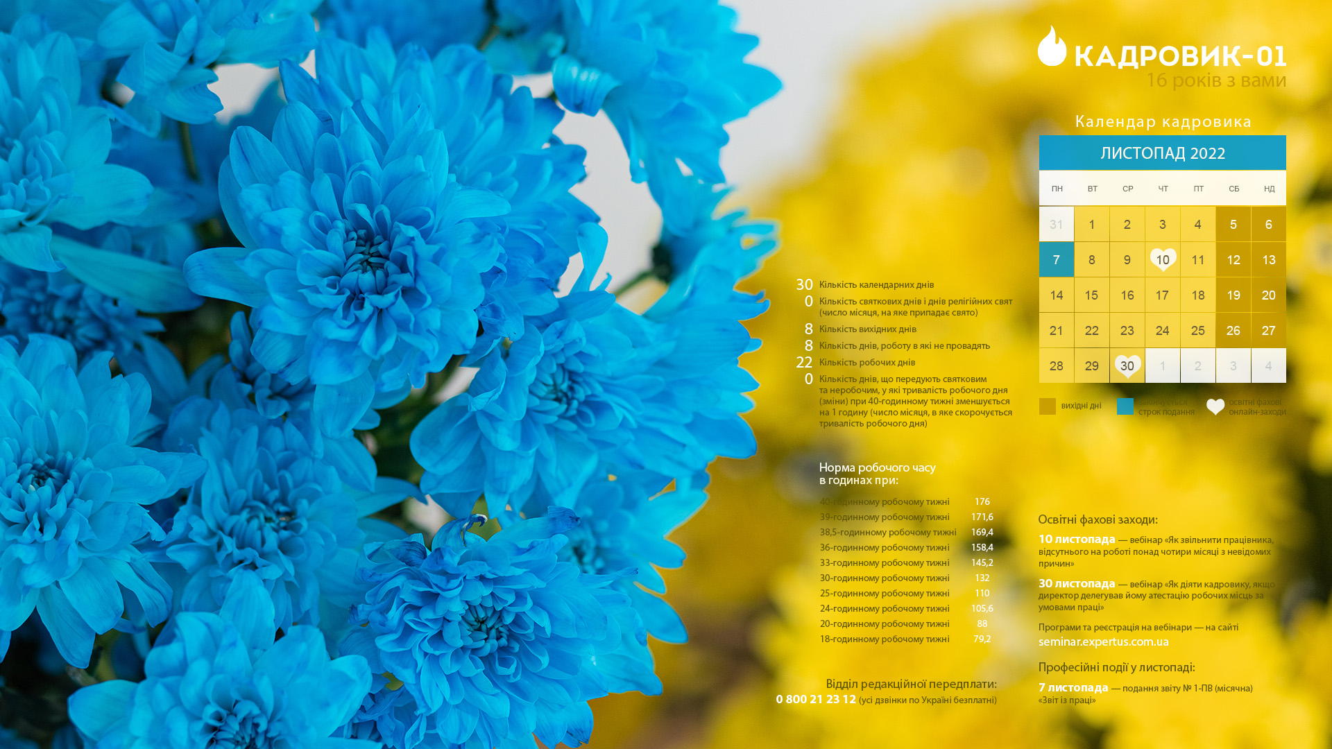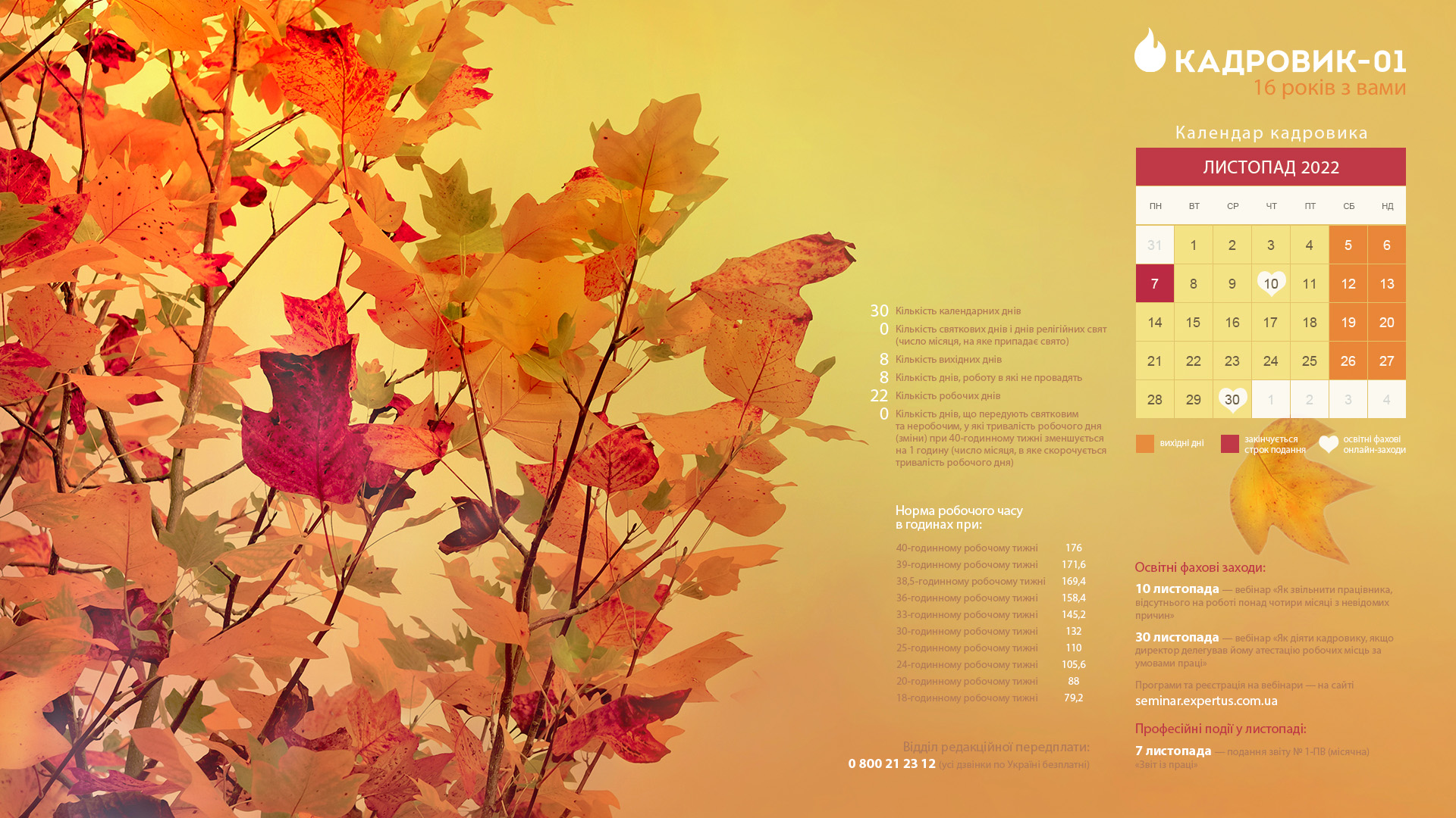 - 10 листопада — вебінар «Як звільнити працівника, відсутнього на роботі понад чотири місяці з невідомих причин»