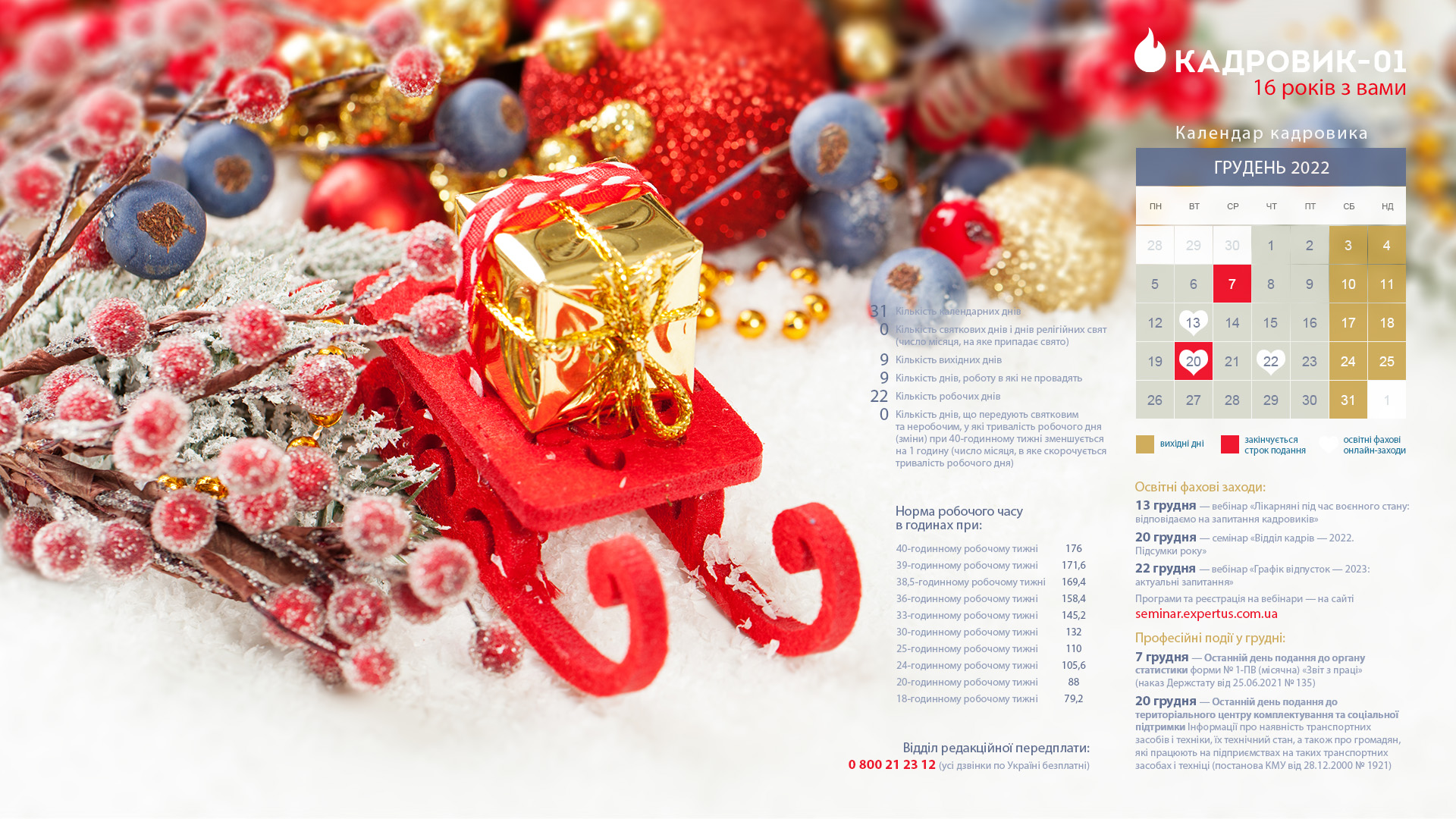 20 грудня — семінар «Відділ кадрів — 2022. Підсумки року»