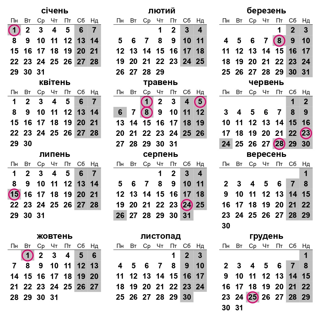 Святкові та неробочі дні в Україні: пам’ятка