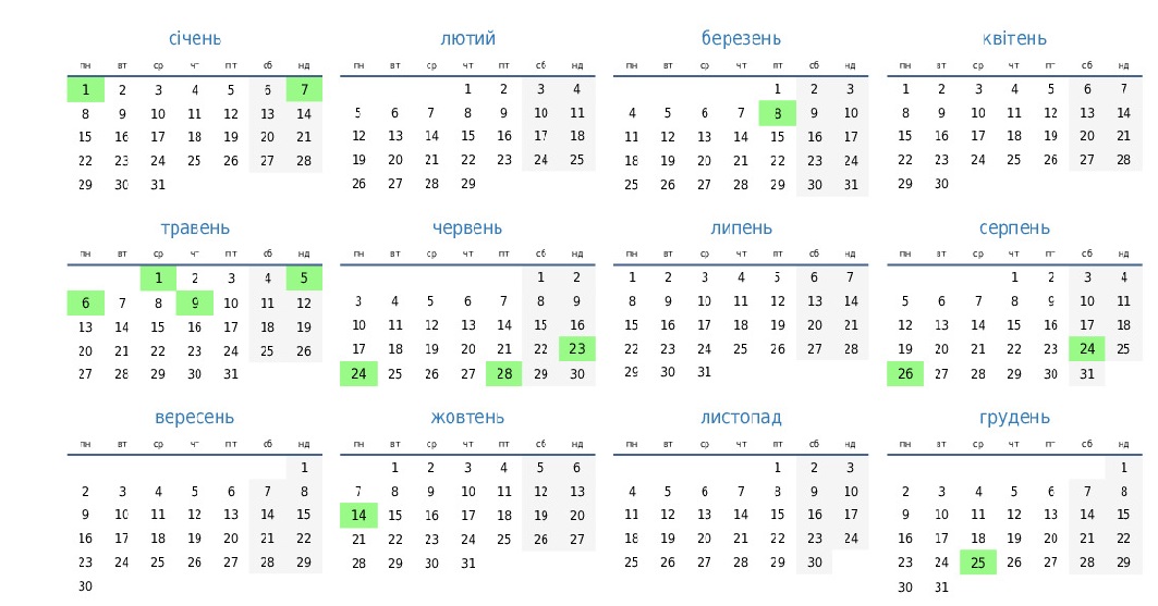 Святкові дні 2024