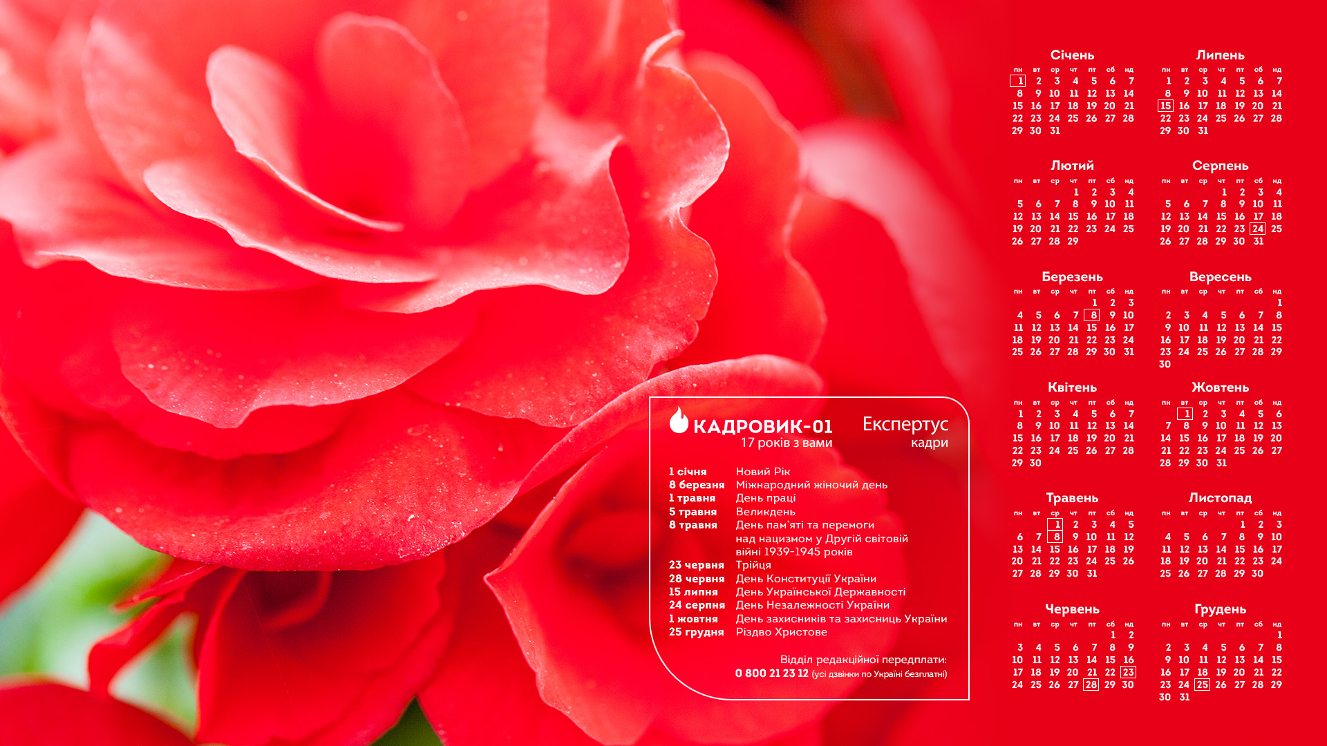 Наш дизайнер створив календар на 2024 рік зі святковими днями у вигляді заставки для робочого столу. Скачайте, щоб мати під рукою актуальну інформацію.