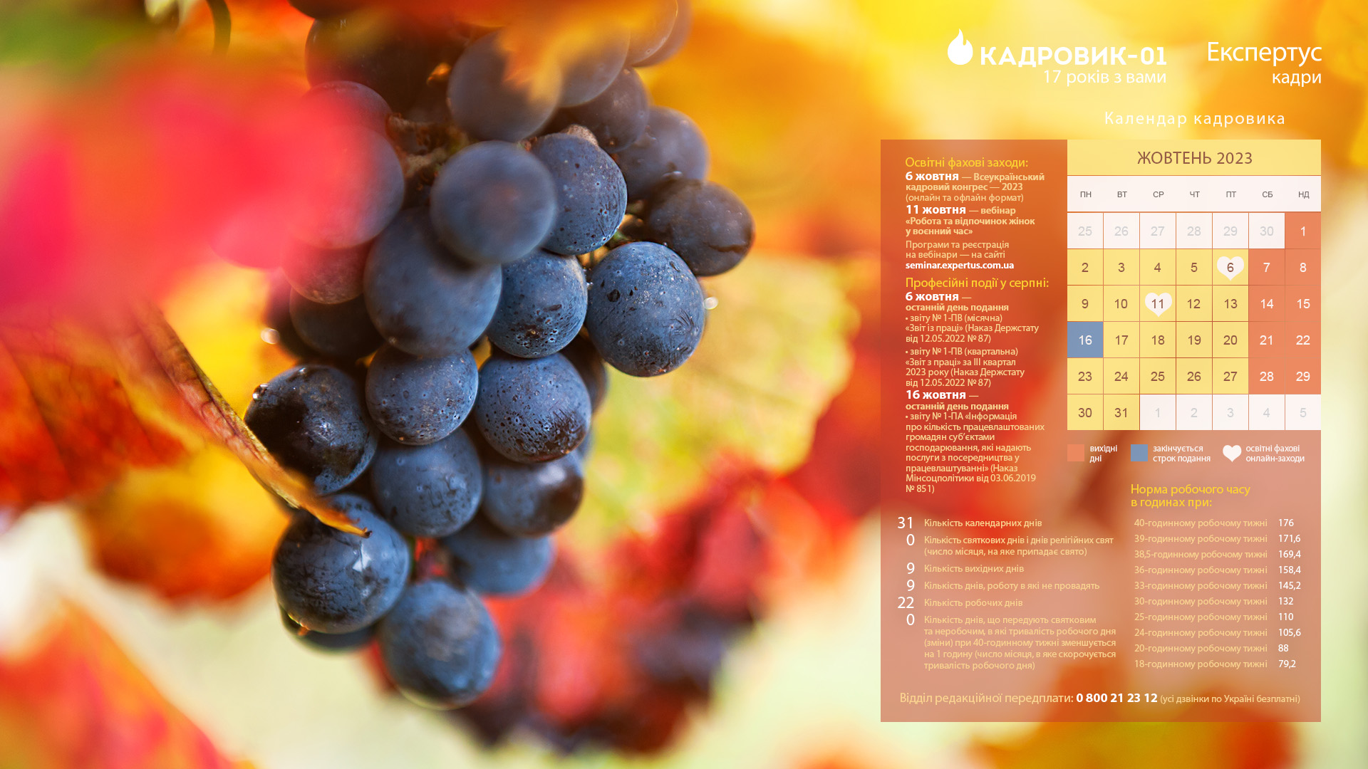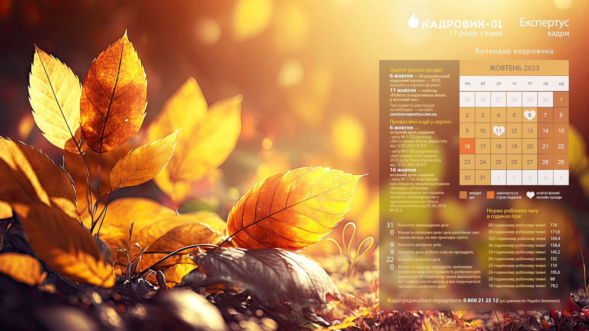 Календар кадровика жовтень 2023