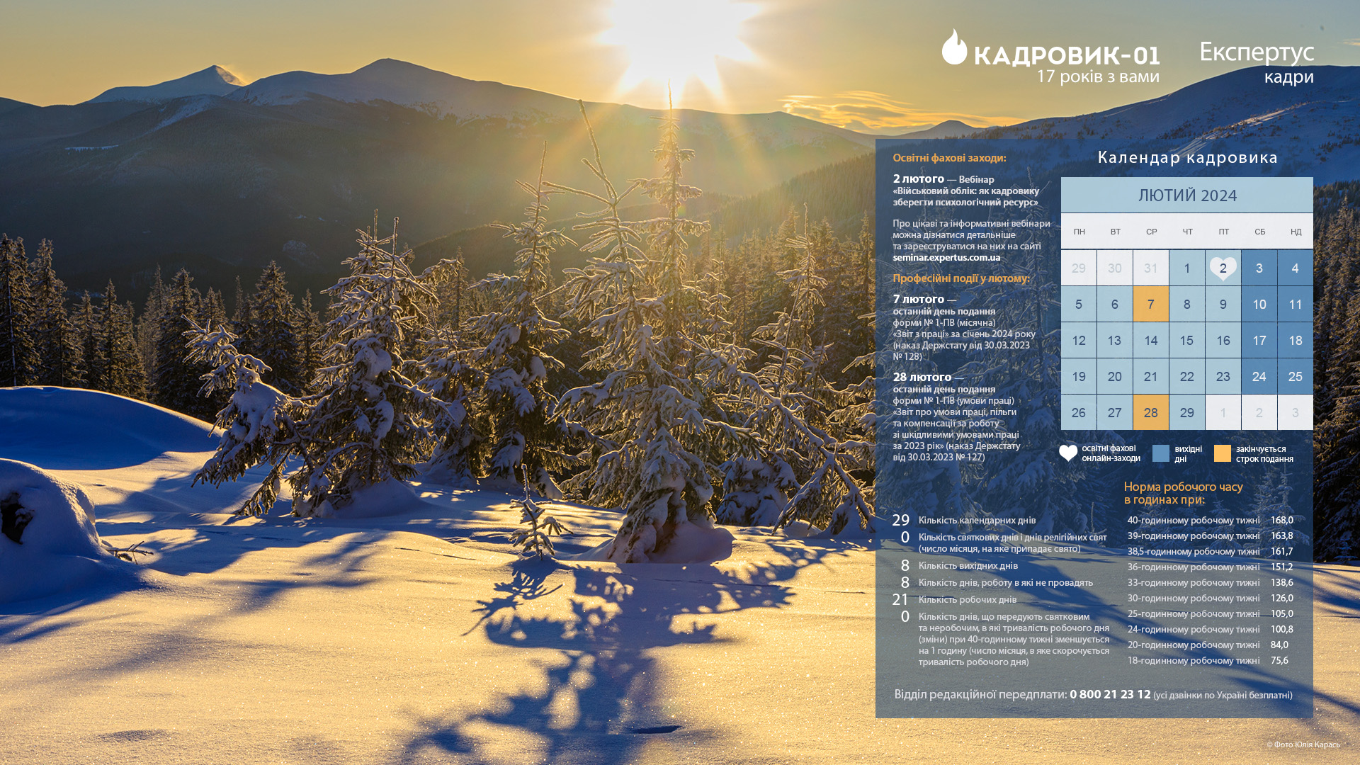 Наші експерти розрахували норми тривалості робочого часу у лютому. Тримайте і користуйтесь: