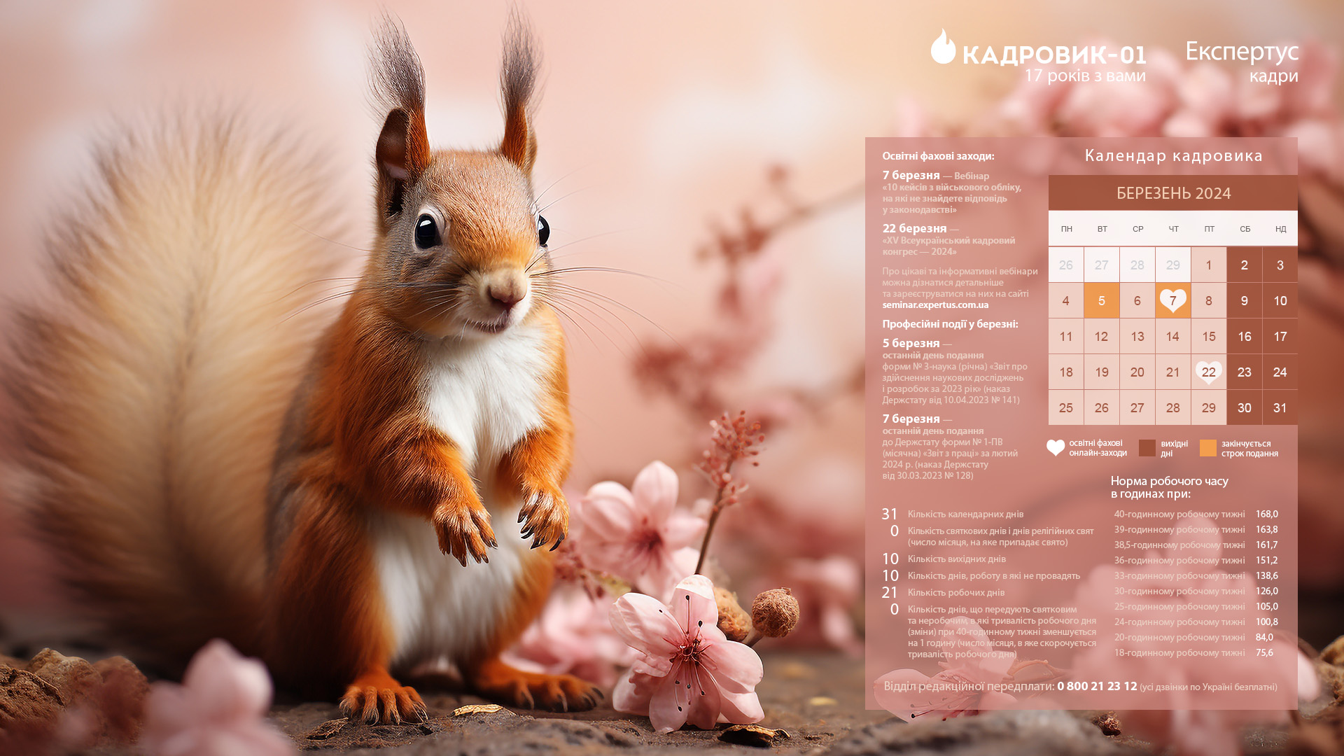 Тривалість робочого тижня в березні, год | Норма тривалості робочого часу в березні, год |