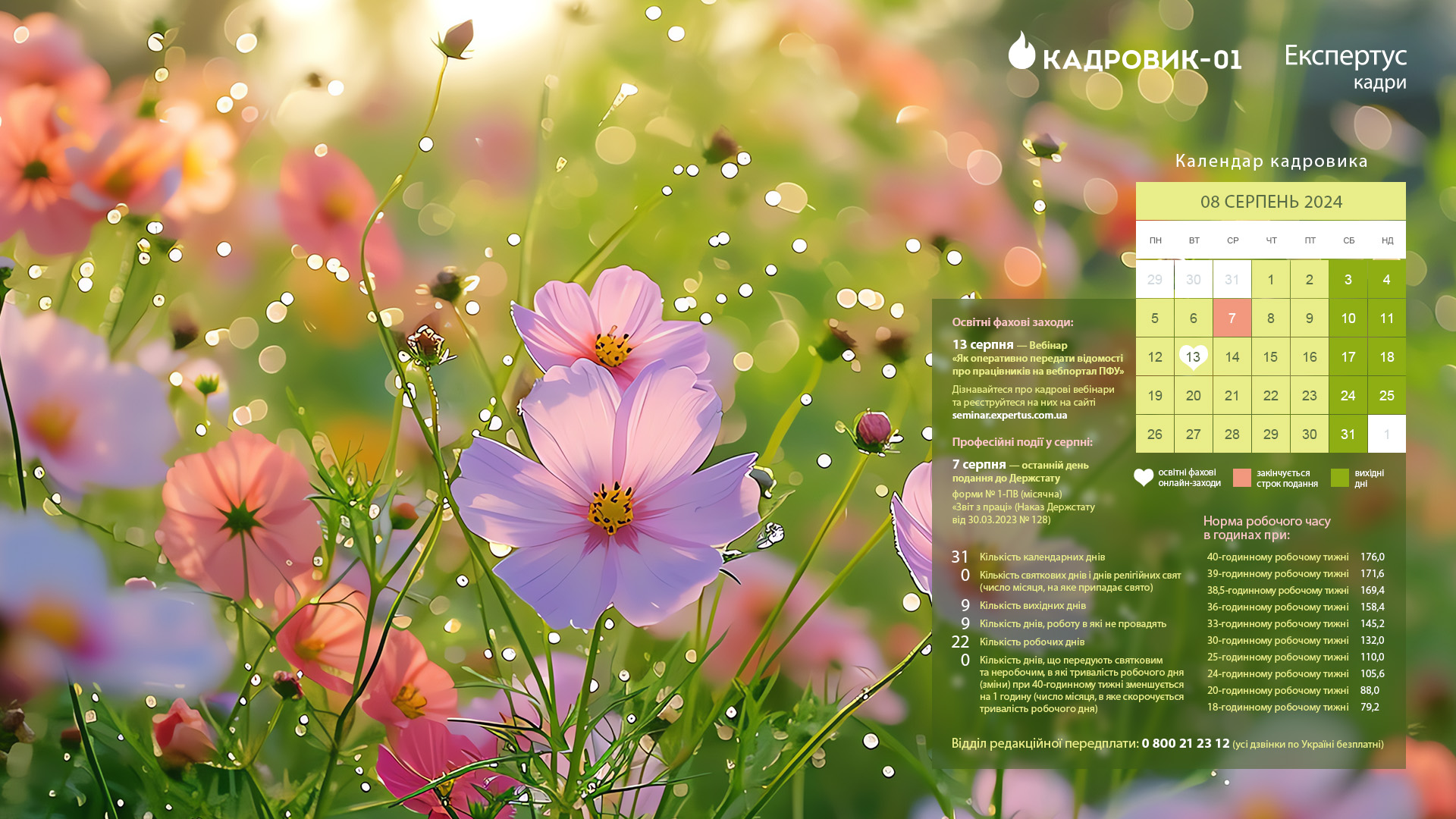 Тривалість робочого тижня у серпні, год | Норма тривалості робочого часу у серпні, год |
