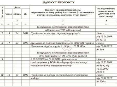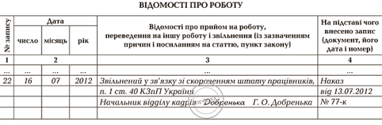 Запис у трудовій книжці про скорочення працівника