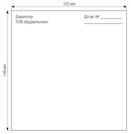 Для виготовлення бланків резолюцій зазвичай використовують аркуші формату А6 (105 × 148 мм). У правому верхньому куті бланка резолюції слід передбачити поле для дати й реєстраційного індексу документа, з яким пов’язана резолюція, — доцільний захід для забезпечення належної інформаційно-довідкової роботи за документами.