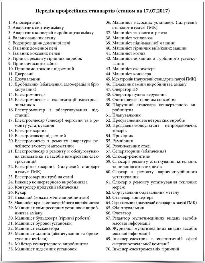 Нині затверджено і впроваджено в практику 70 професійних стандартів.