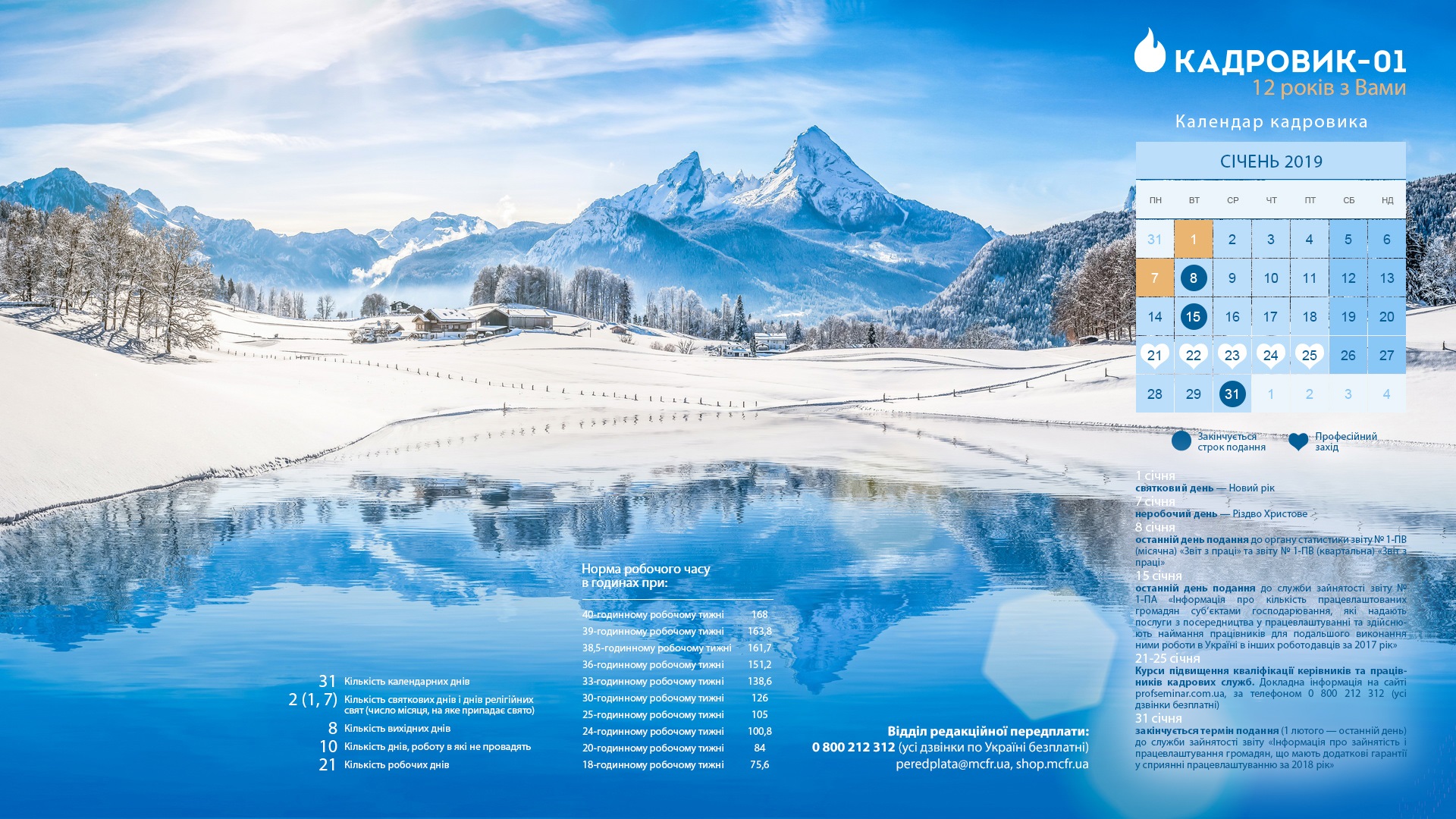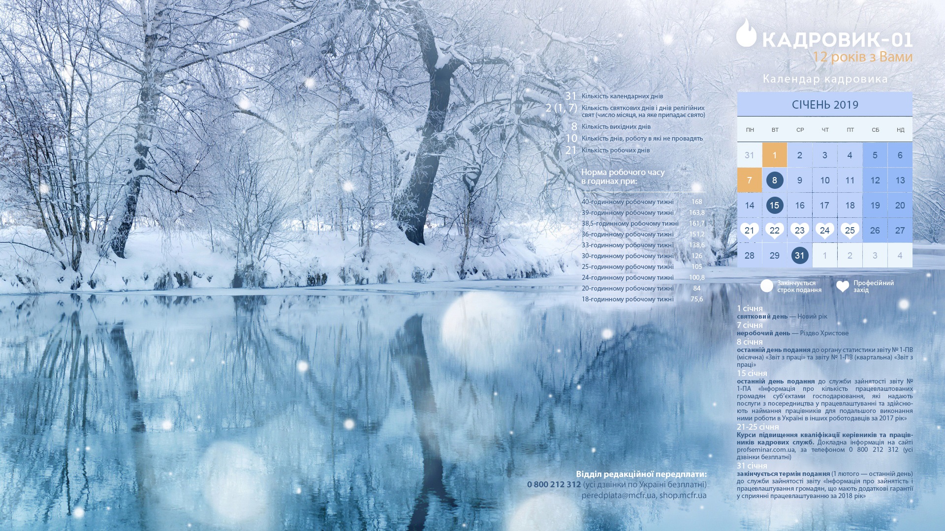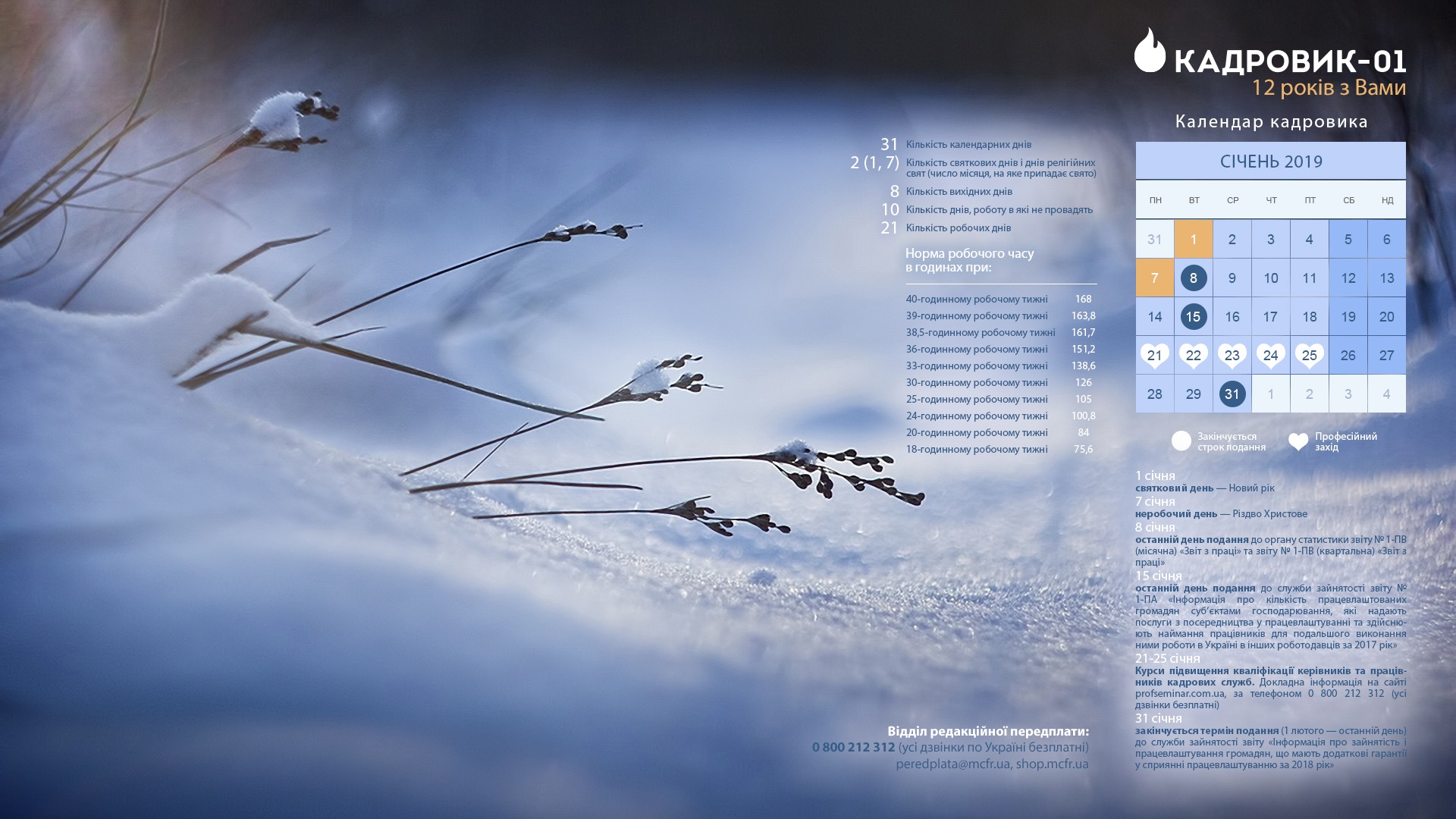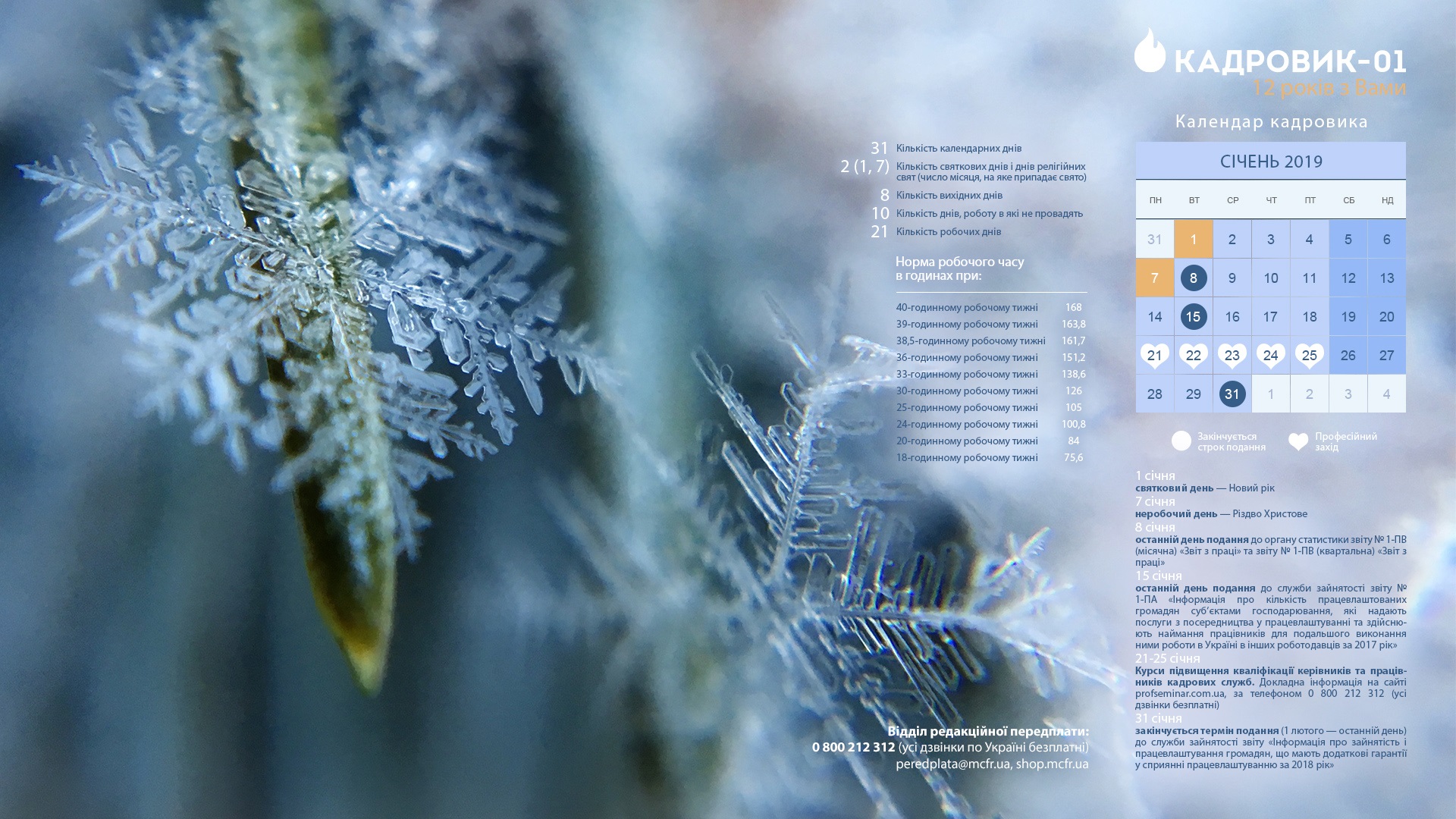 Календар кадровика на січень 2019 року