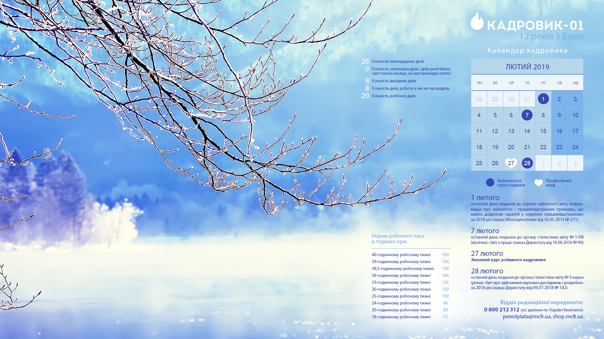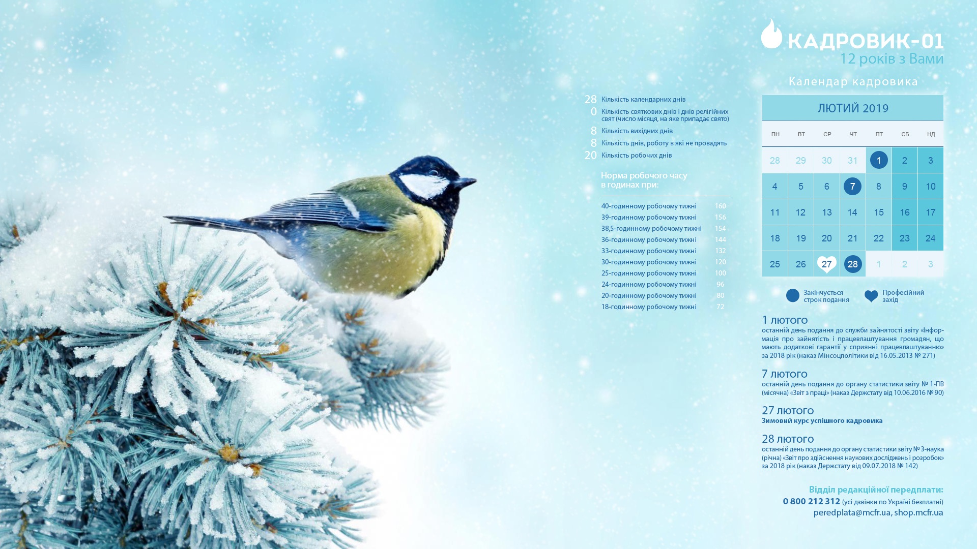 Календар кадровика на лютий 2019 року