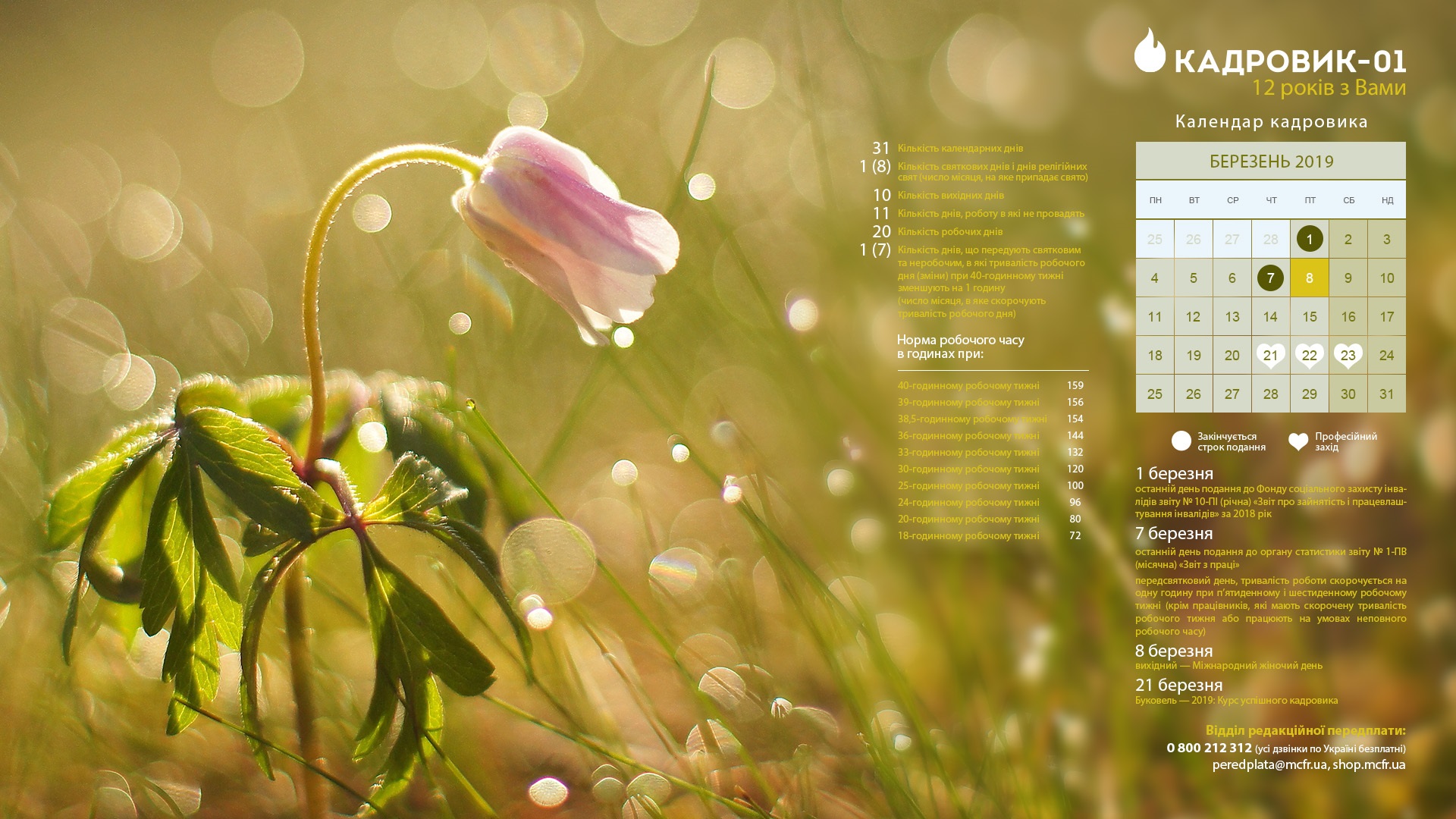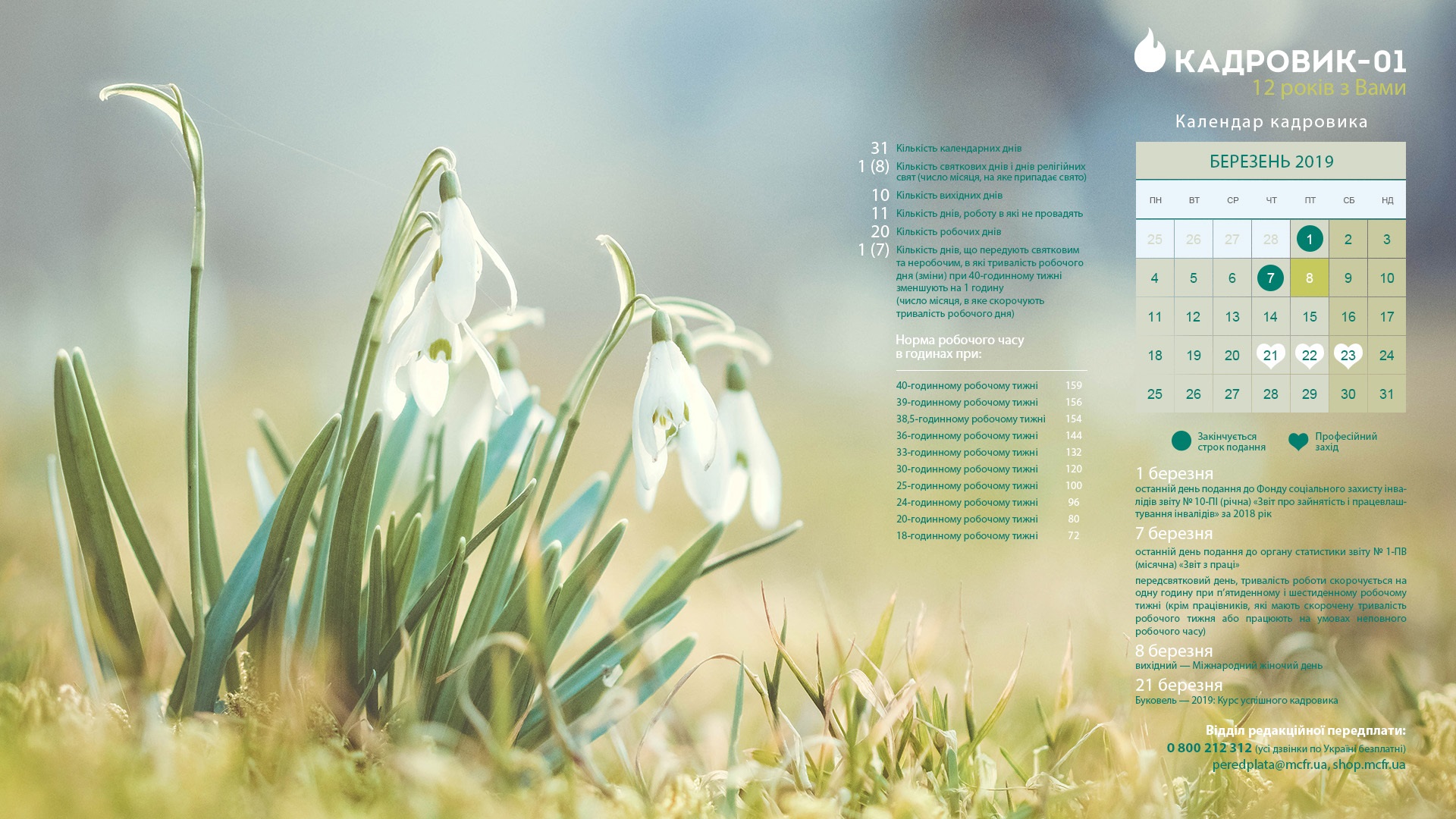 Календар кадровика на березень 2019 року