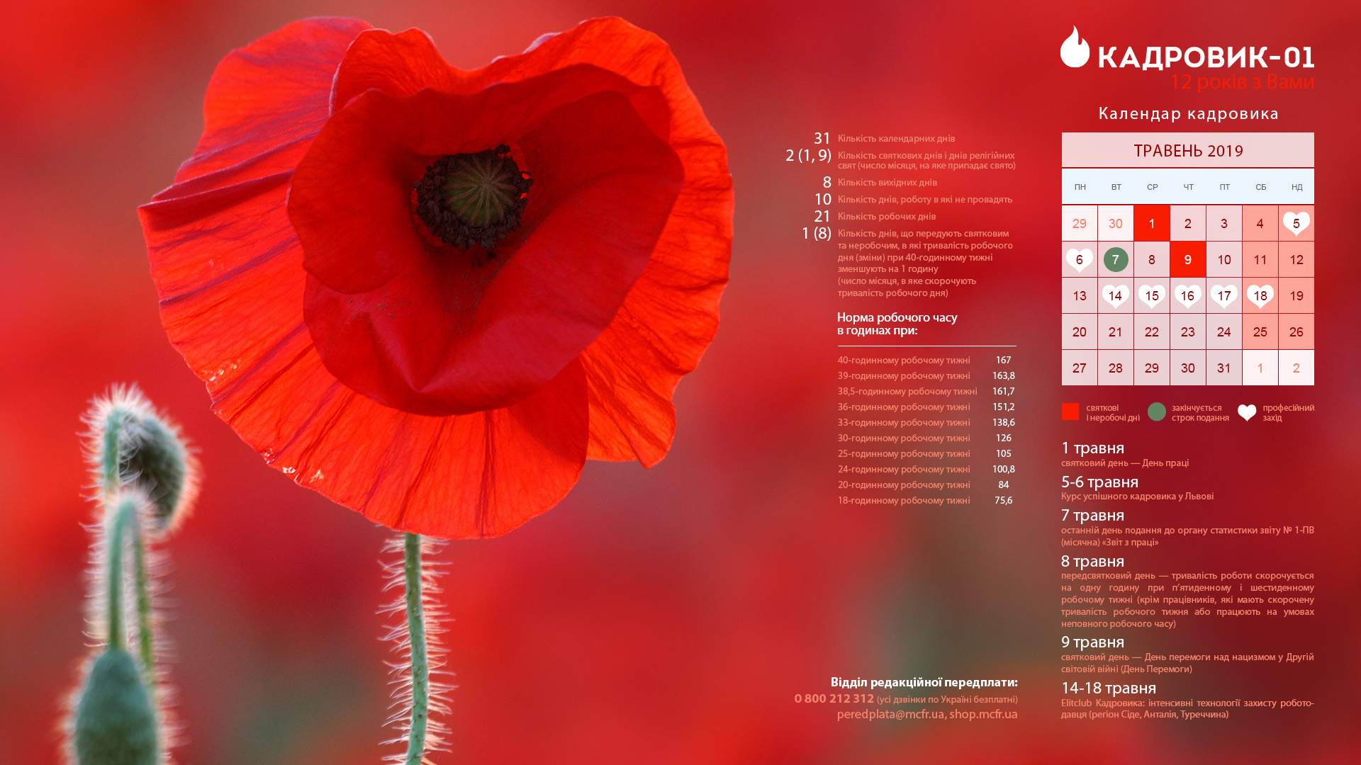 Виробничий календар кадровика на травень 2019 року