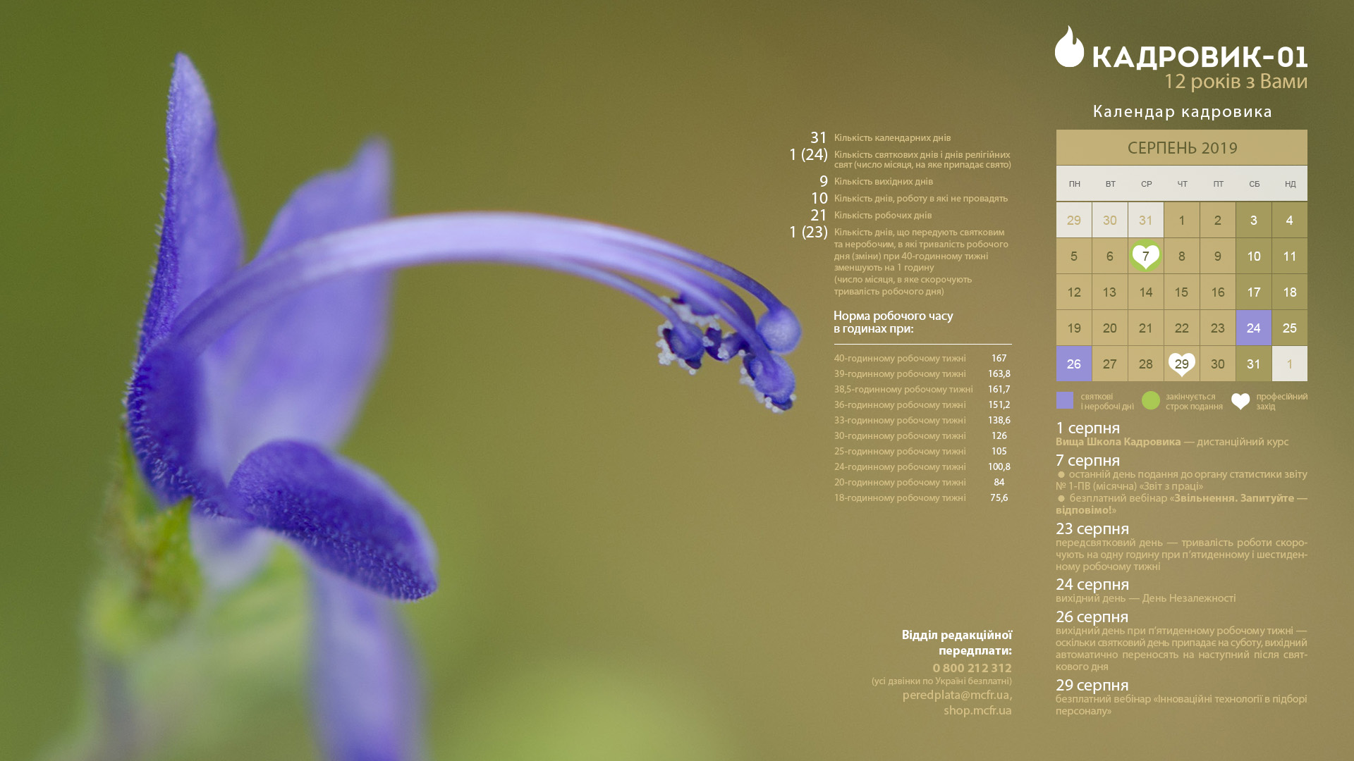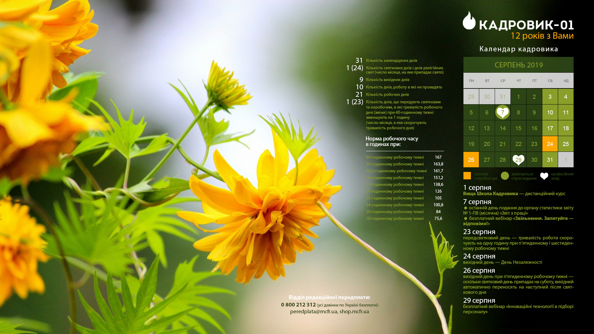 - 1 серпня — дистанційний курс навчання з отриманням свідоцтва про підвищення кваліфікації державного зразка Вища Школа Кадровика;