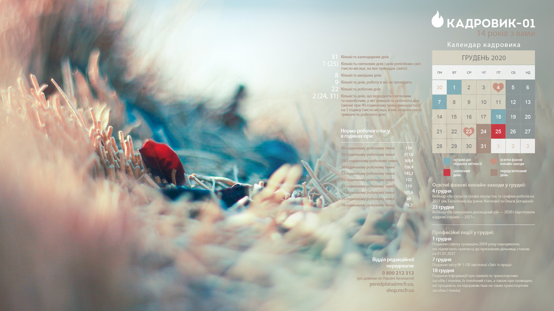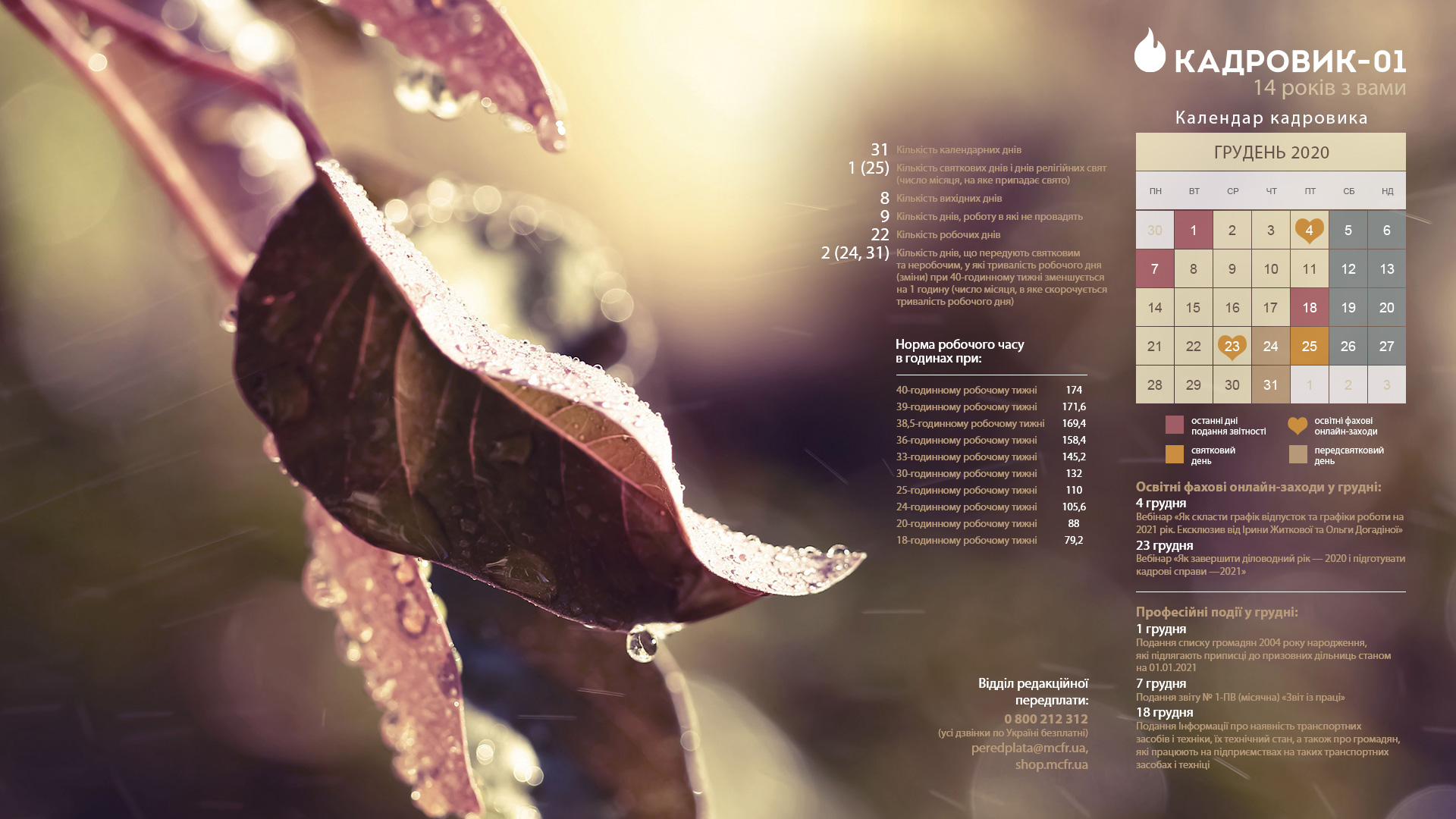 23 грудня | Вебінар «Як завершити діловодний рік 2020 і підготувати кадрові справи 2021» |