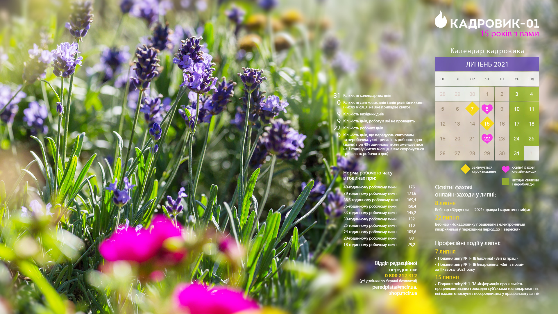 Кількість днів, що передують святковим та неробочим, у які тривалість робочого дня (зміни) при 40–годинному тижні зменшується на 1 годину (число місяця, в яке скорочується тривалість робочого дня) | – |
