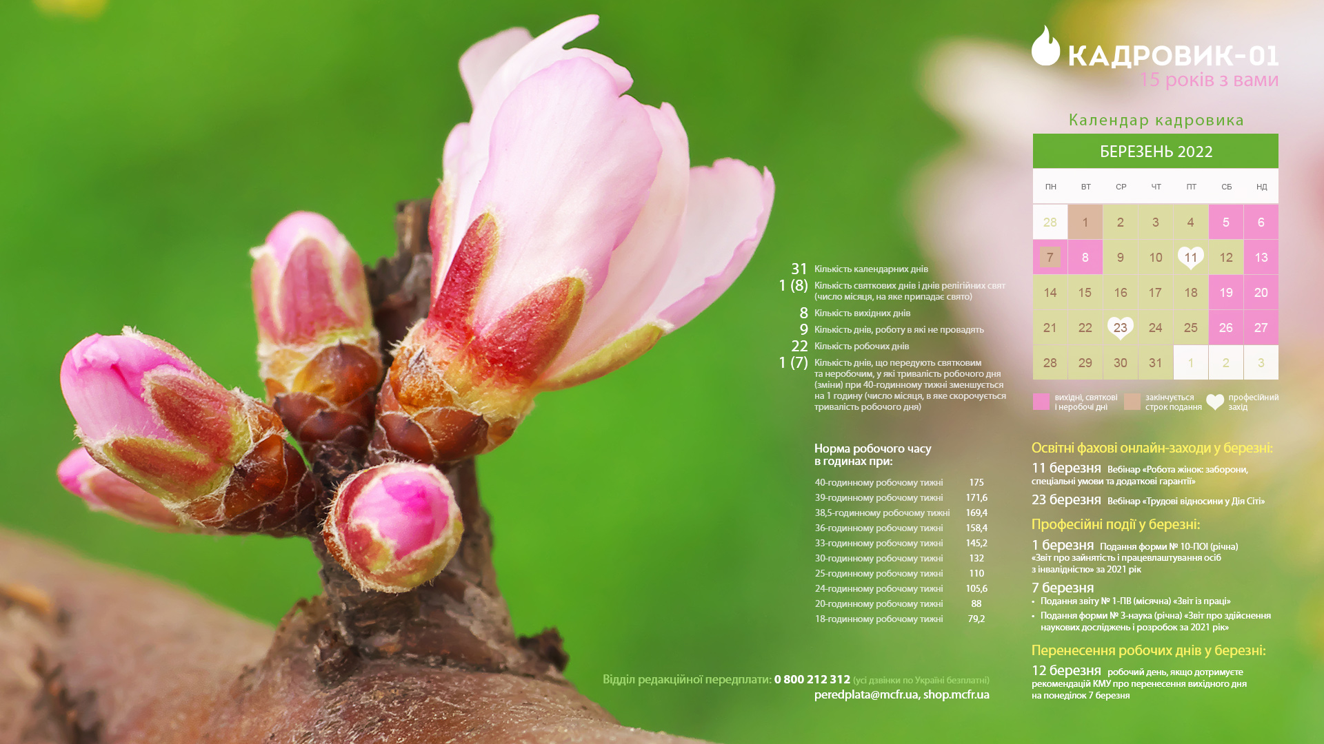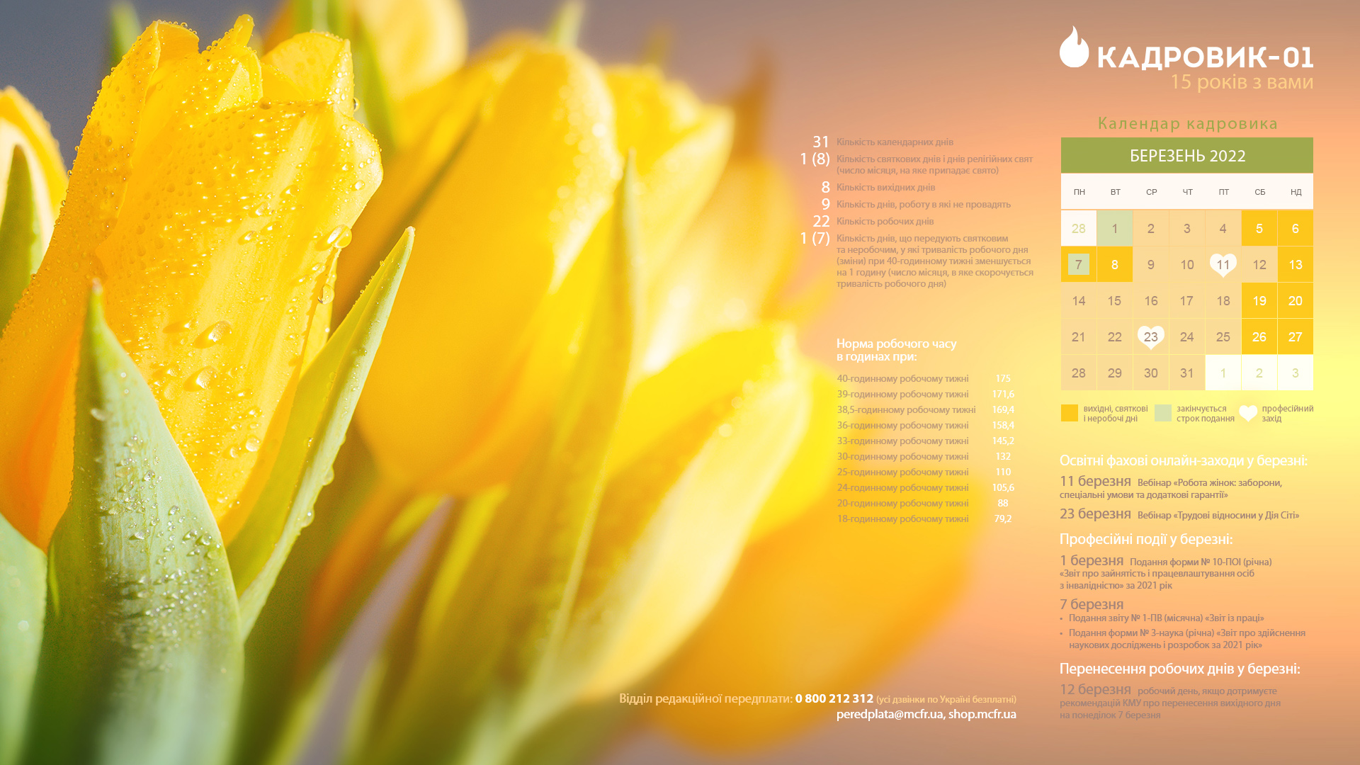 Обратите внимание! КМУ рекомендовал предприятиям в 2022 году перенести рабочий день с понедельника 7 марта на субботу 12 марта. Основание – распоряжение КМУ «О переносе рабочих дней в 2022 году» от 26.08.2021 № 1004-р.