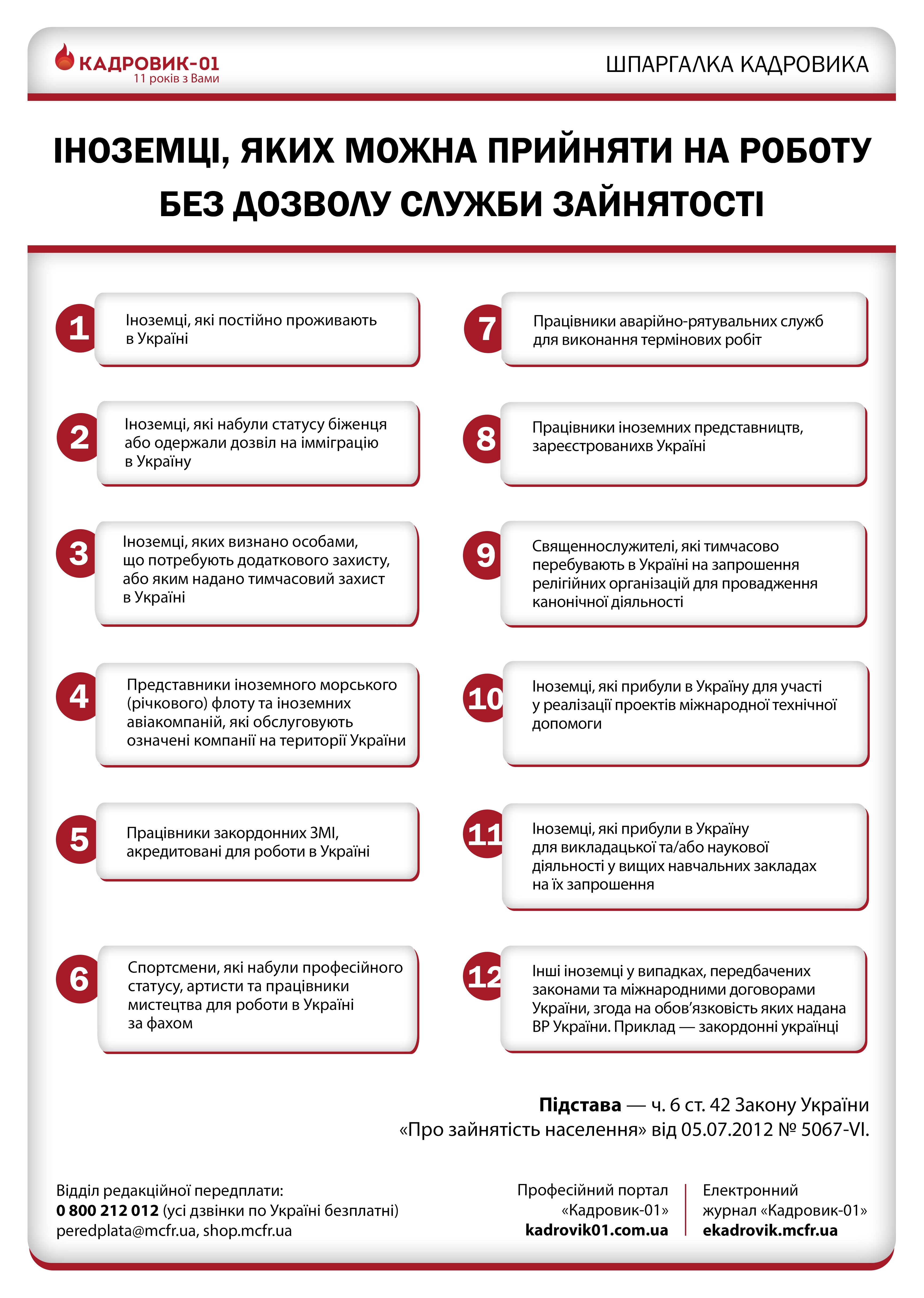 Іноземці, яких можна приняти на роботу без дозволу служби зайнятості