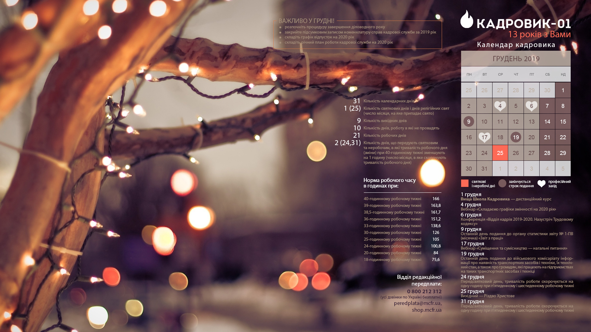 До того ж у грудні потрібно пам’ятати про перенесення робочих днів. Нагадуємо, що Уряд Розпорядженням від 10.01.2019 № 7-р