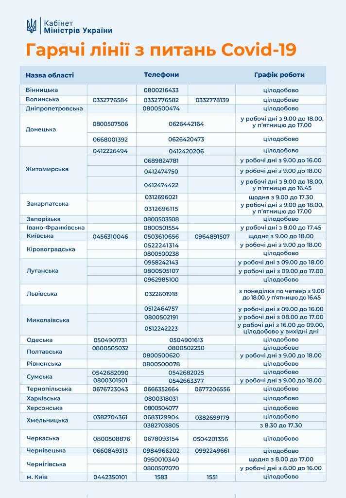 Бережіть себе та тримайте напохваті номери телефонів «гарячих ліній» з питань COVID-19.
