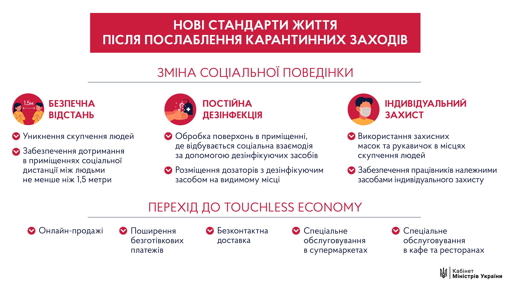 «Україна, як і весь світ, має навчитися жити за новими стандартами, за новою соціальною поведінкою. Послаблення карантинних обмежень не означає, що загроза мине.
