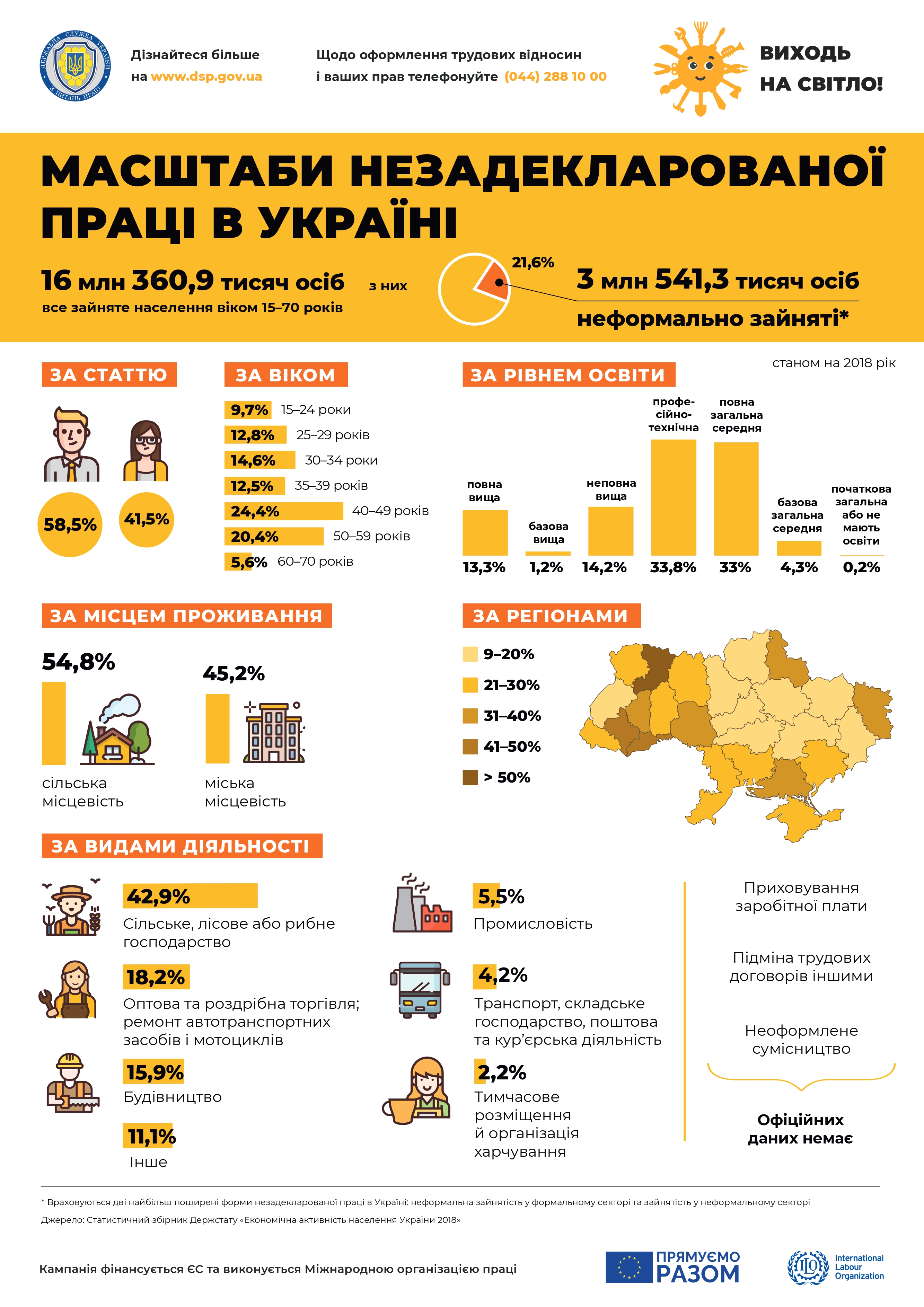 Понад 20% працездатного населення України повністю або частково не декларують трудові відносини з роботодавцем.