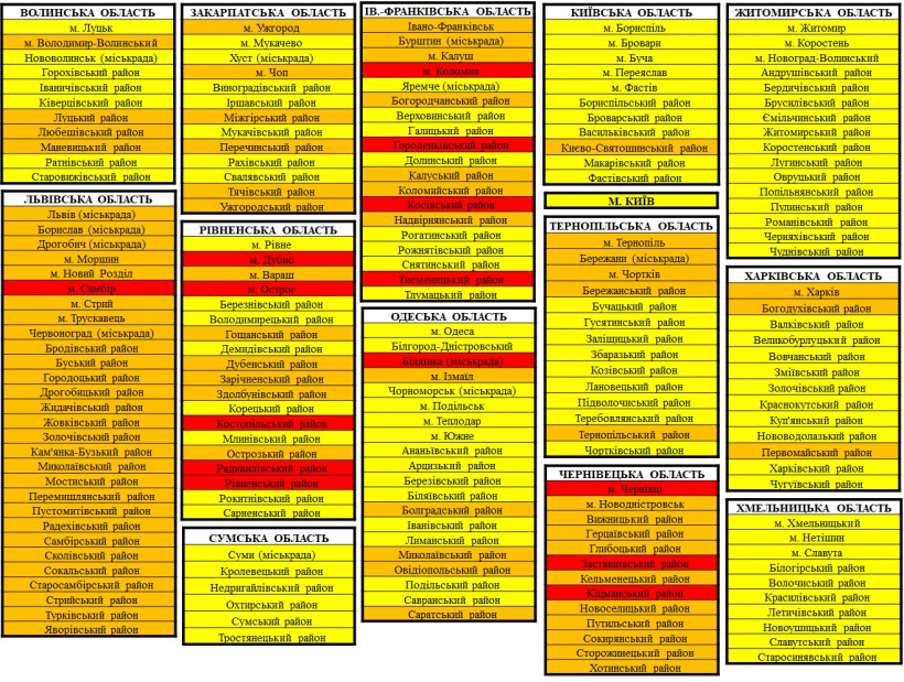 «Помаранчевий» рівень встановлено для таких регіонів: