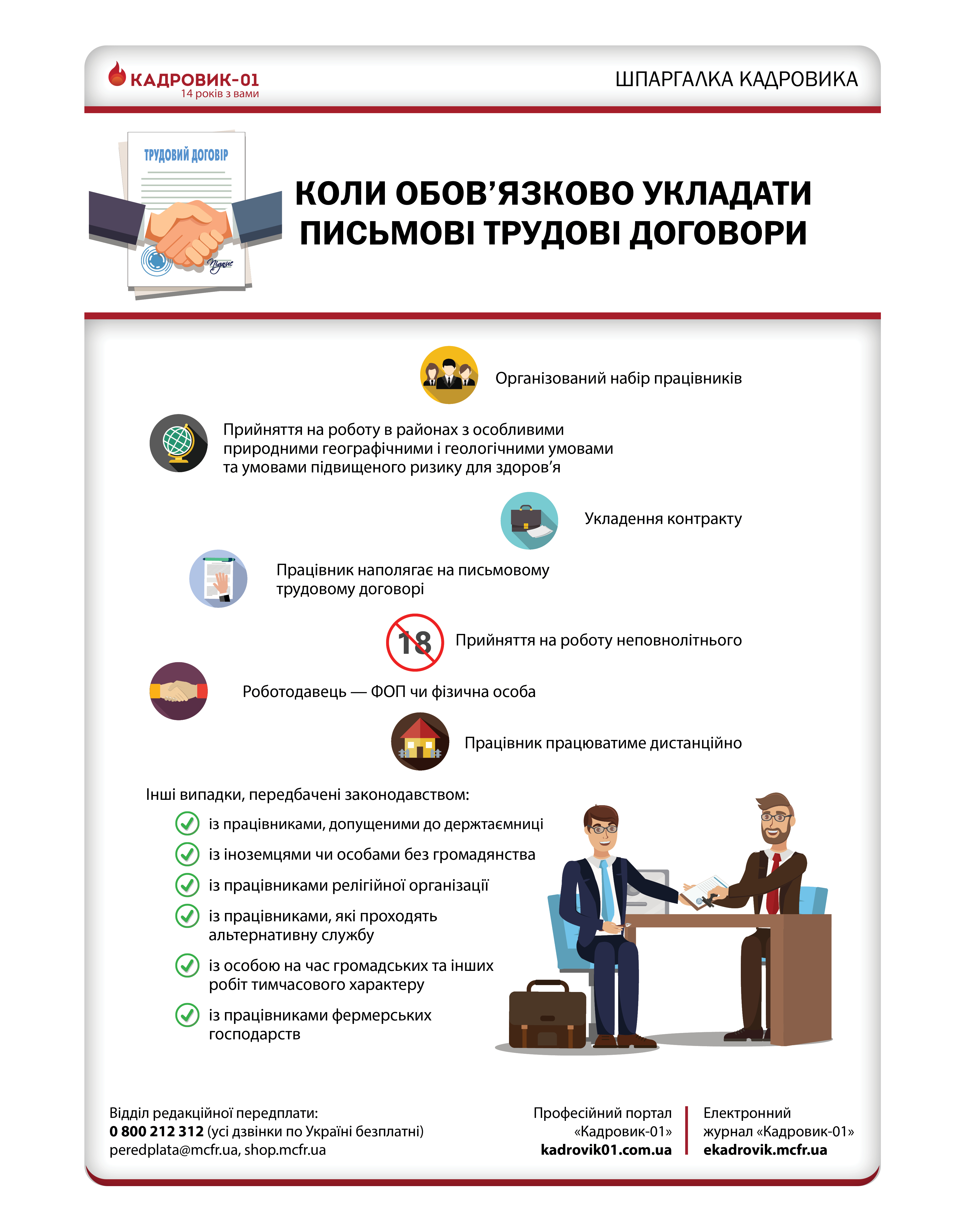 Письмовий трудовий договір обов’язково оформлюється у письмовому вигляді у таких випадках: