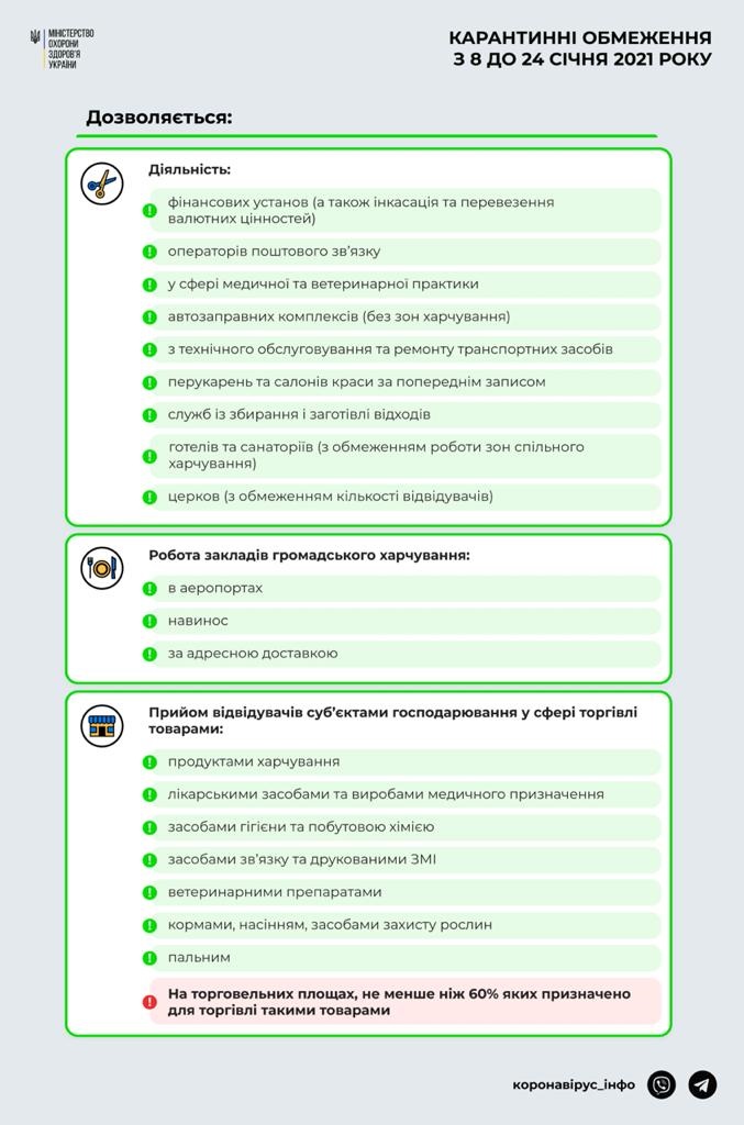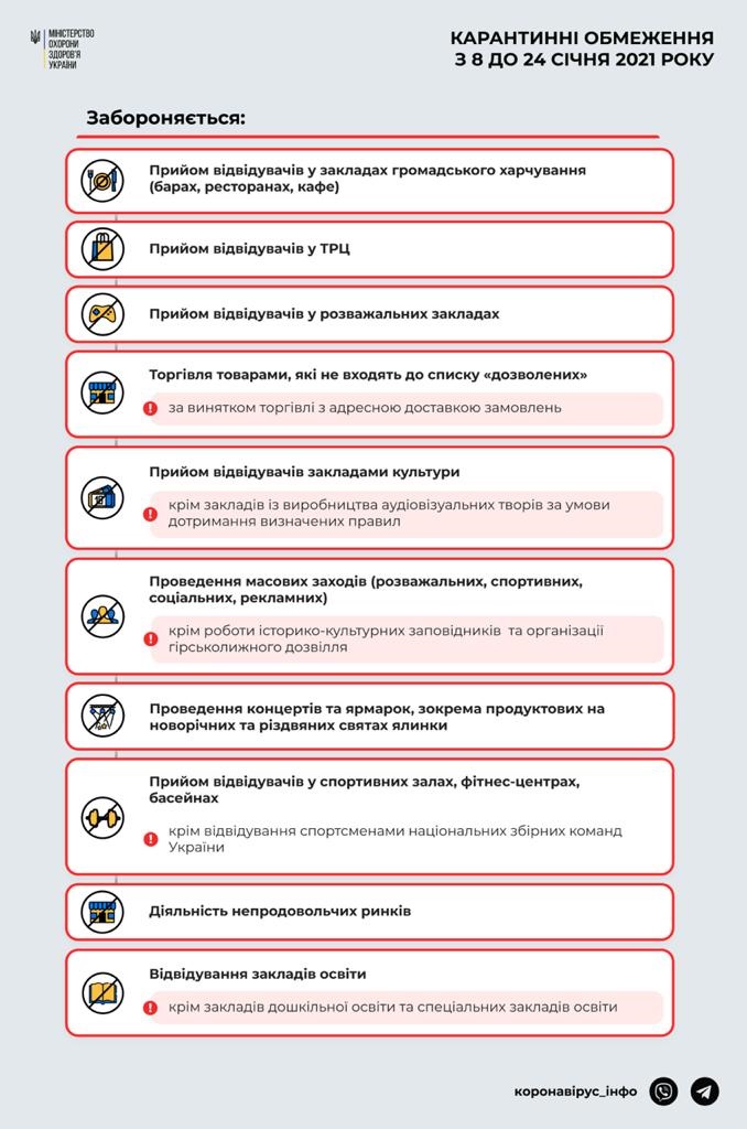 Посилені карантинні обмеження триватимуть до 24 січня 2021 року включно
