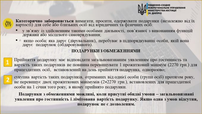 Обмеження щодо подарунків держслужбовцям