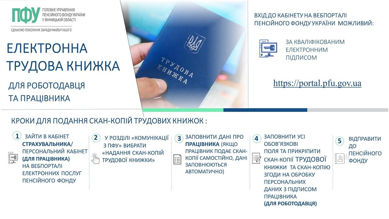 Відомості про трудову діяльність працівника подають страхувальники за своїх найманих працівників або сам працівник через вебпортал електронних послуг ПФУ в електронній формі за допомогою кваліфікованого електронного підпису осіб, які подають інформацію.