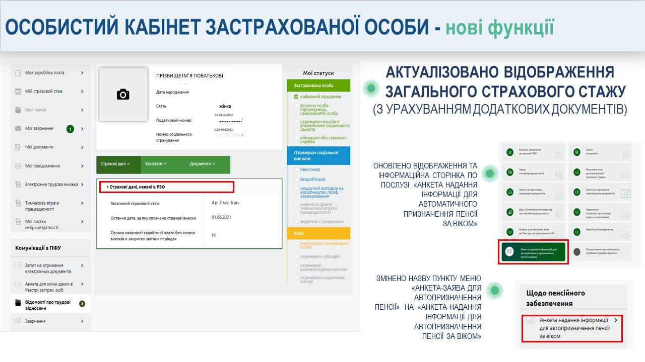 - актуалізовано відображення загального страхового стажу в профілі застрахованої особи;