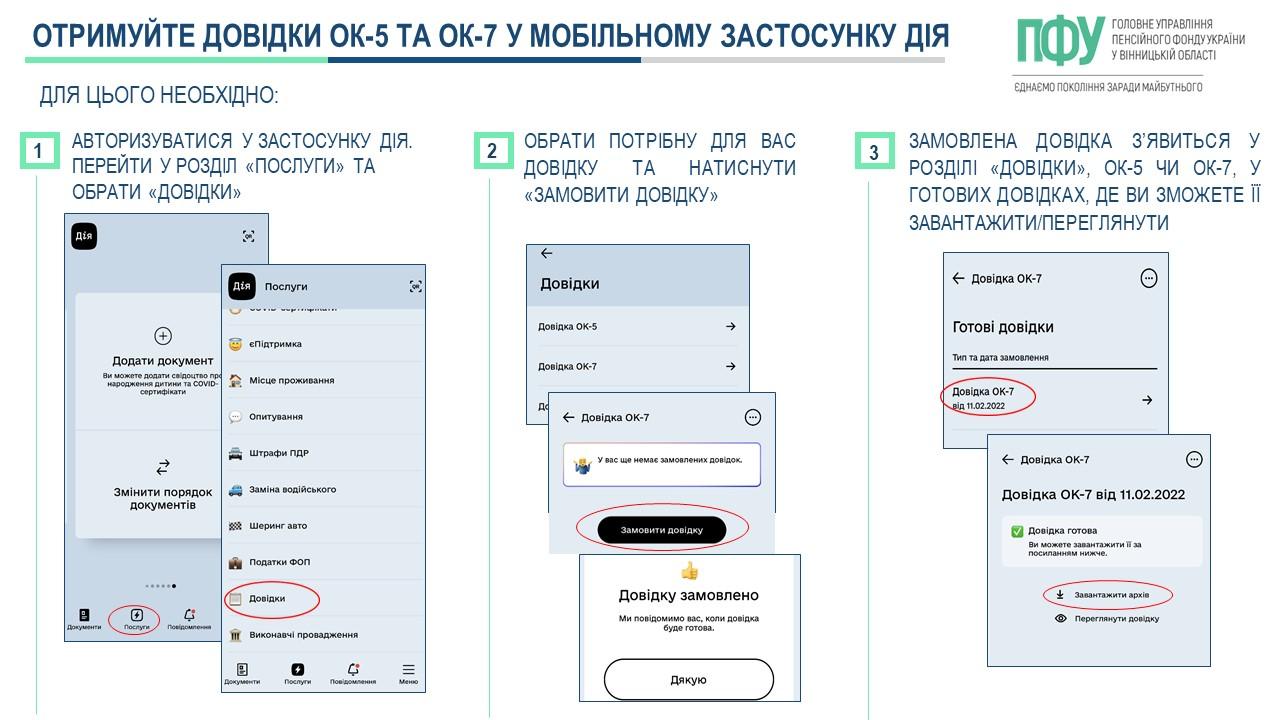 8 лютого 2022 року на Diia Summit Мінцифри презентувало довідку ОК-5 у мобільному застосунку Дія. Міністерство реалізувало цей сервіс у співпраці з ПФУ та Мінсоцполітики.