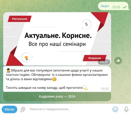 Ми запустили Telegram-бот, щоб полегшити життя кадровикам України у веденні кадрового діловодства. Цей інструмент буде корисний керівникам кадрових служб, інспекторам з кадрів, менеджерам з персоналу та бухгалтерам, що ведуть кадри, фахівцям, які ведуть військовий облік на підприємстві, а також тим, хто змінив професію і навчається кадровій справі з «нуля».